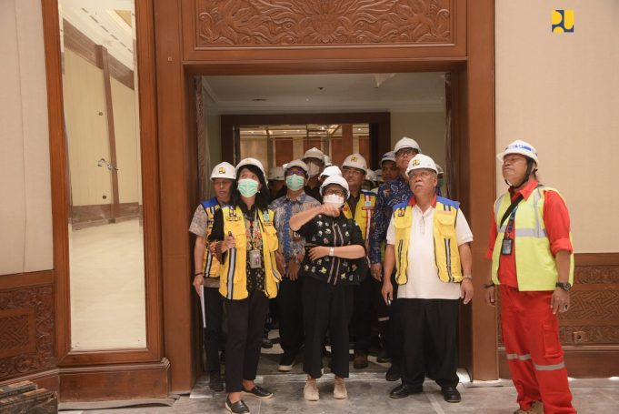 BISKOM, Jakarta – Menteri Pekerjaan Umum dan Perumahan Rakyat (PUPR) Basuki Hadimuljono bersama Menteri Luar Negeri Retno LP Marsudi meninjau progres rehabilitasi Jakarta Convention Center (JCC) yang berada di Kompleks Gelanggang Olahraga (Gelora) Bung Karno, Jakarta, Sabtu (12/8/2023).