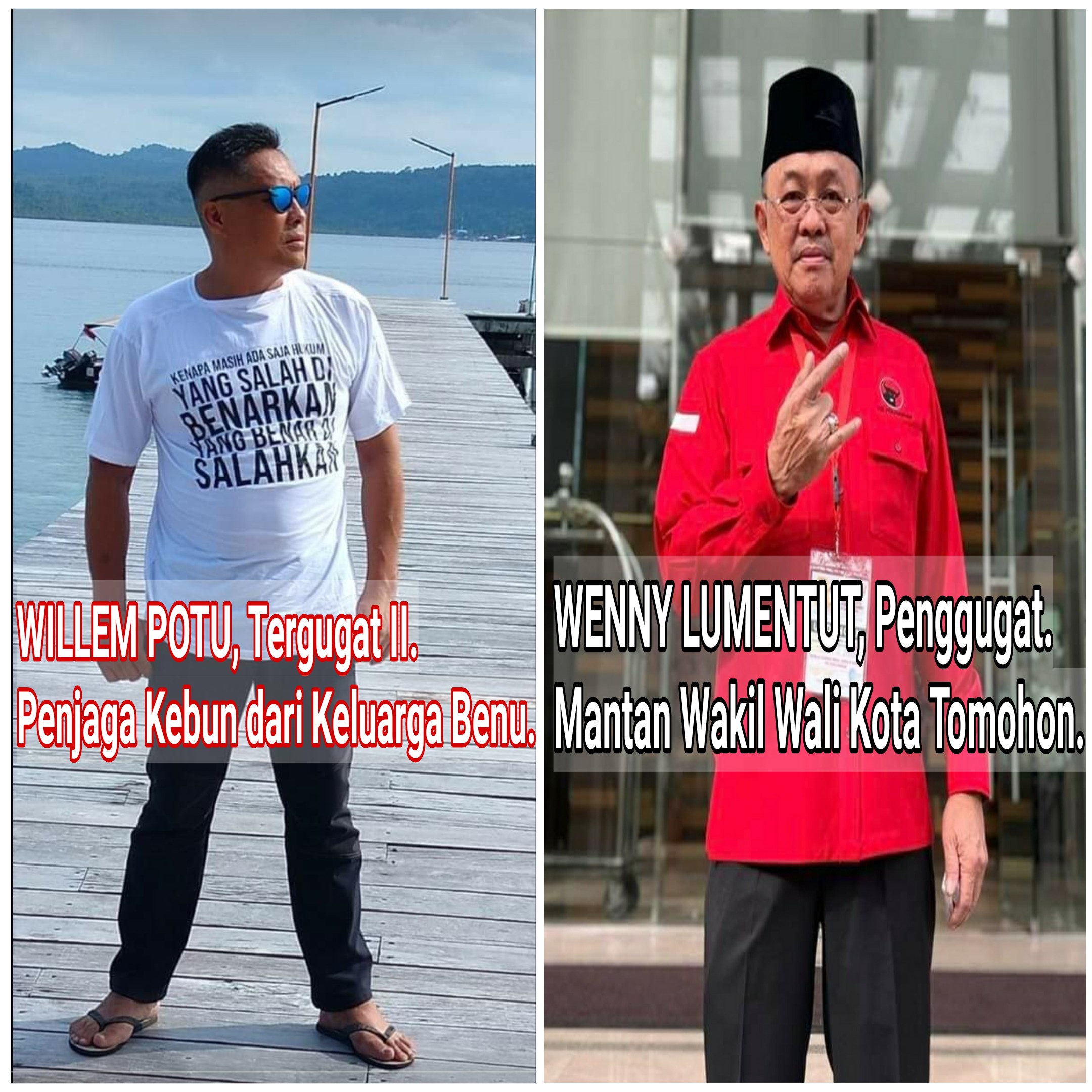 Jolla Benu, dalam perkara ini menjadi tergugat 1, Willem Potu tergugat 2 dan kakak Jolla bernama Olfie Benu yang sebelumnya membeli tanah itu dari Daniel Kalalo, kemudian menghibahkannya pada Jolla Benu, pada gugatan Wenny Lumentut yang mencantumkan pekerjaannya sebagai Wakil Wali Kota Tomohon itu, menjadi tergugat 3.