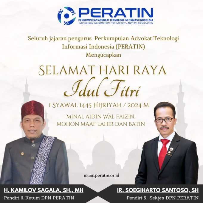 Dengan segala hormat & kerendahan hati yang tulus, Seluruh jajaran pengurus Perkumpulan Advokat Teknologi Informasi Indonesia (PERATIN) mengucapkan Selamat Hari Raya Idul Fitri 1 Syawal 1445 Hijriah/ 2024 M.