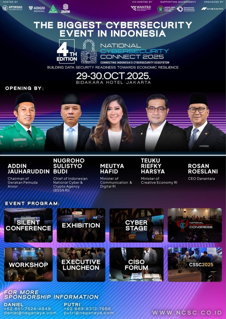 Presiden Direktur PT Naganaya Indonesia, Aditya Adiguna, turut menyoroti pentingnya acara ini. “NCC 2025 tidak hanya menyasar kalangan B2B, tetapi juga masyarakat luas. Ini merupakan bentuk tanggung jawab bersama dalam meningkatkan literasi dan mendorong pertumbuhan industri keamanan digital,” paparnya.