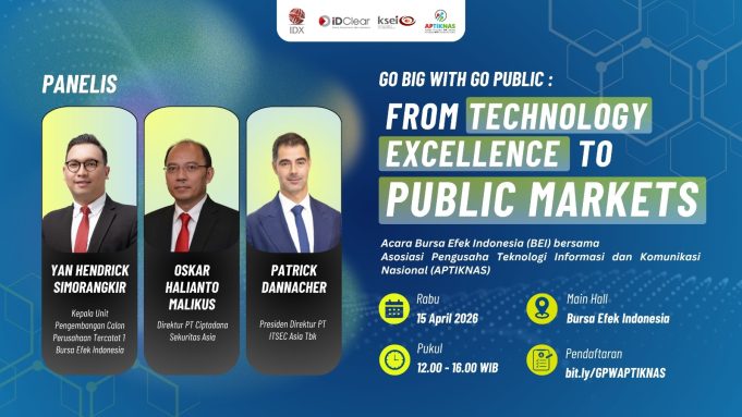 BISKOM, Jakarta – Asosiasi Pengusaha Teknologi Informasi dan Komunikasi Nasional (APTIKNAS) bersama Bursa Efek Indonesia (BEI) akan menyelenggarakan kegiatan Go Public Workshop bertajuk: “Go Big with Go Public: From Technology Excellence to Public Markets.”